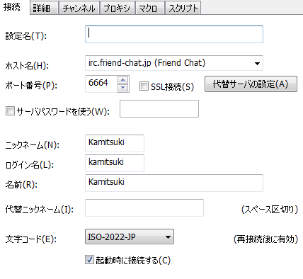 1.IRCの上のタスクバーの「設定」の中の「設定」を押します。(ショートカットキーでAltキー+Sキーで開きます。)